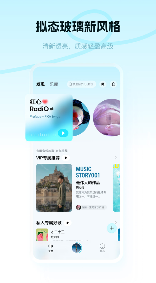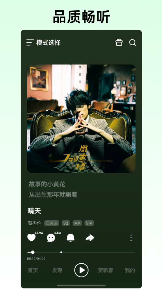 千万首免费流行正版音乐,还都作为有歌手专门版权赋予,看似极简实则能作为多平台融合,免费的音乐还能享受无损的音质享受,按照喜欢的歌曲进行收藏、喜欢生成DIY歌单,里面还有很多贴心的功能可以让你在学习、开车、睡觉时都能更好地贴合音乐。