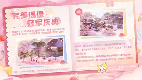 活动期间,搭配师可前往完美偶像冠军庆典,体验旋转跳跃的彩绘世界。参与玩法可得钻石、养成材料等奖励。