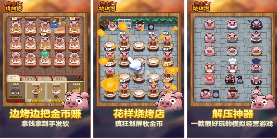 主打放置+策略双轨模式,玩家在离线状态下仍可积累基础收益,上线后集中处理订单分发、员工排班与设备升级。引入“星系评级”体系,通过提升服务效率解锁新星球主题场景,小猪NPC担任助理角色,提供经营提示与成就引导。