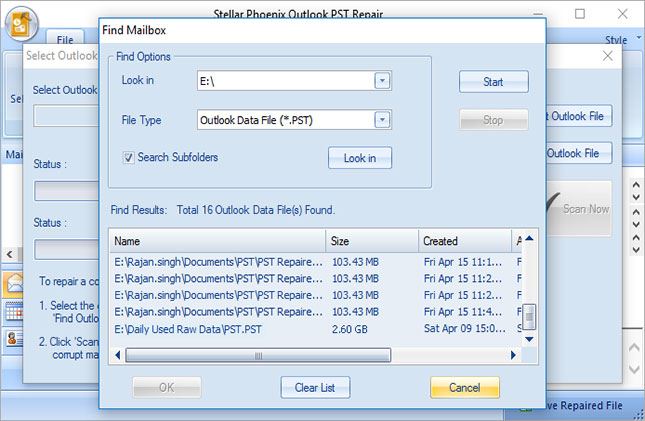 步骤3、选择多个PST文件进行扫描并开始修复过程。