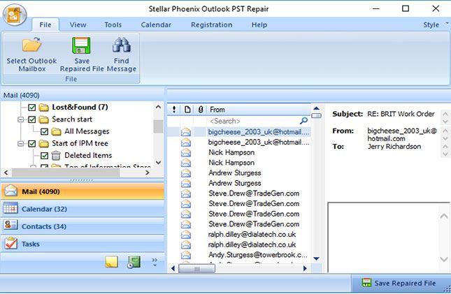 步骤4、要预览已修复的Outlook PST文件,请双击位于屏幕左侧的族树上的项目。