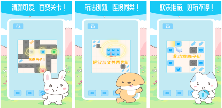 该作以清新治愈系美术风格见长,融合手绘质感与柔和配色,打造轻松愉悦的游戏基调。玩法上突破常规边界,引入“双箱联动”“磁吸位移”“时间回溯”等原创机制,使每关解法具备唯一最优路径。新手引导系统分阶段展开,前10关内置交互式教学,确保零基础用户快速理解规则。竖屏单指操作适配移动端触控习惯,操作容错率高,节奏明快不拖沓。