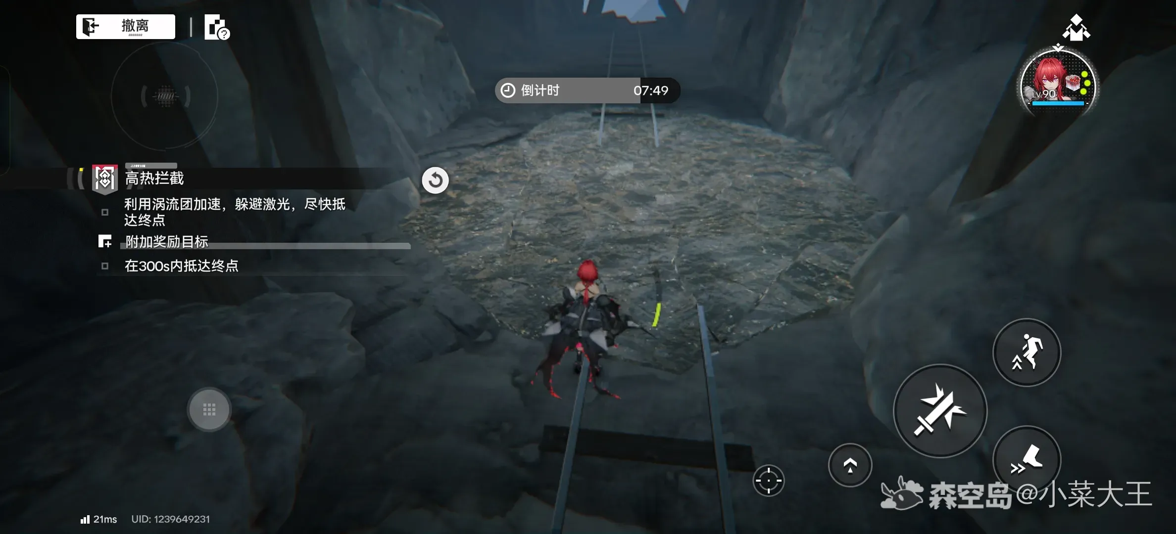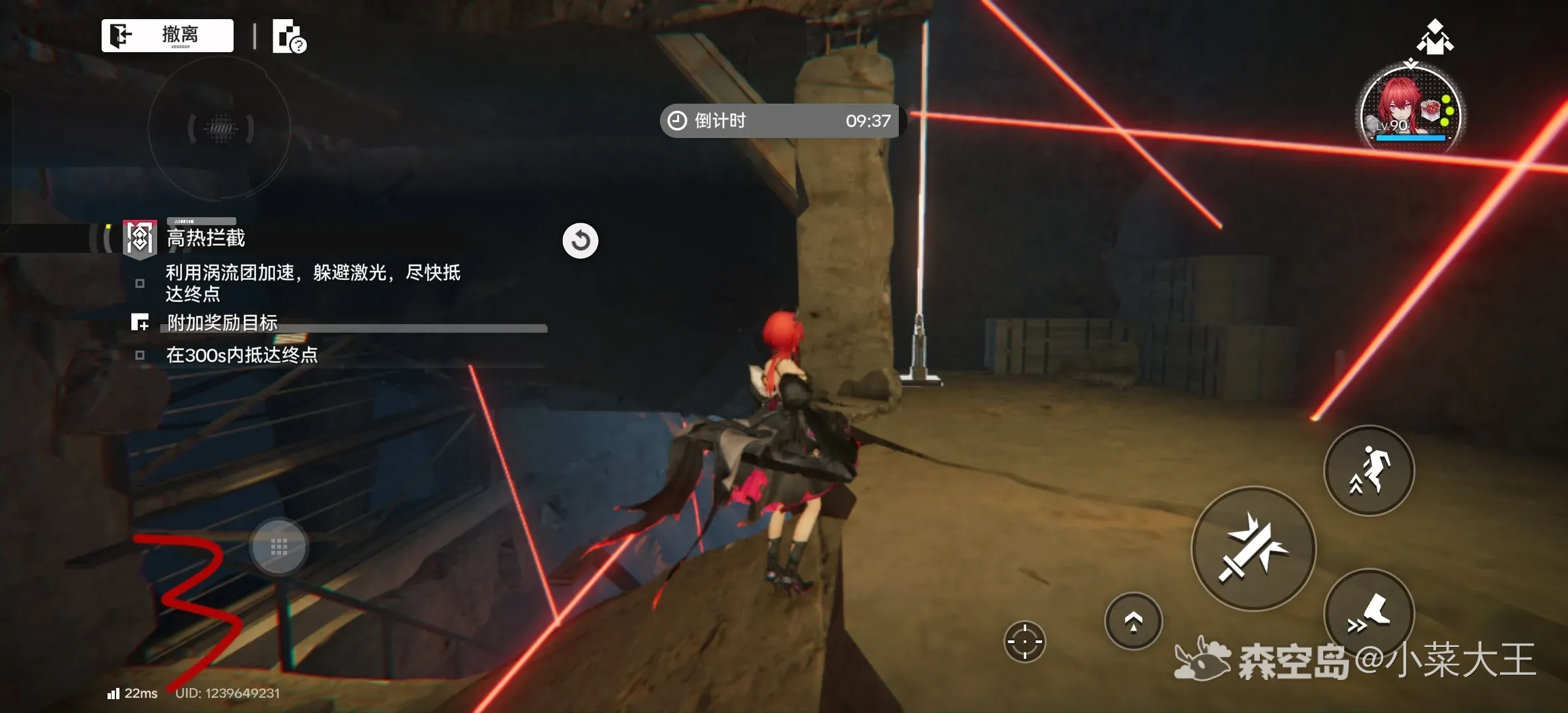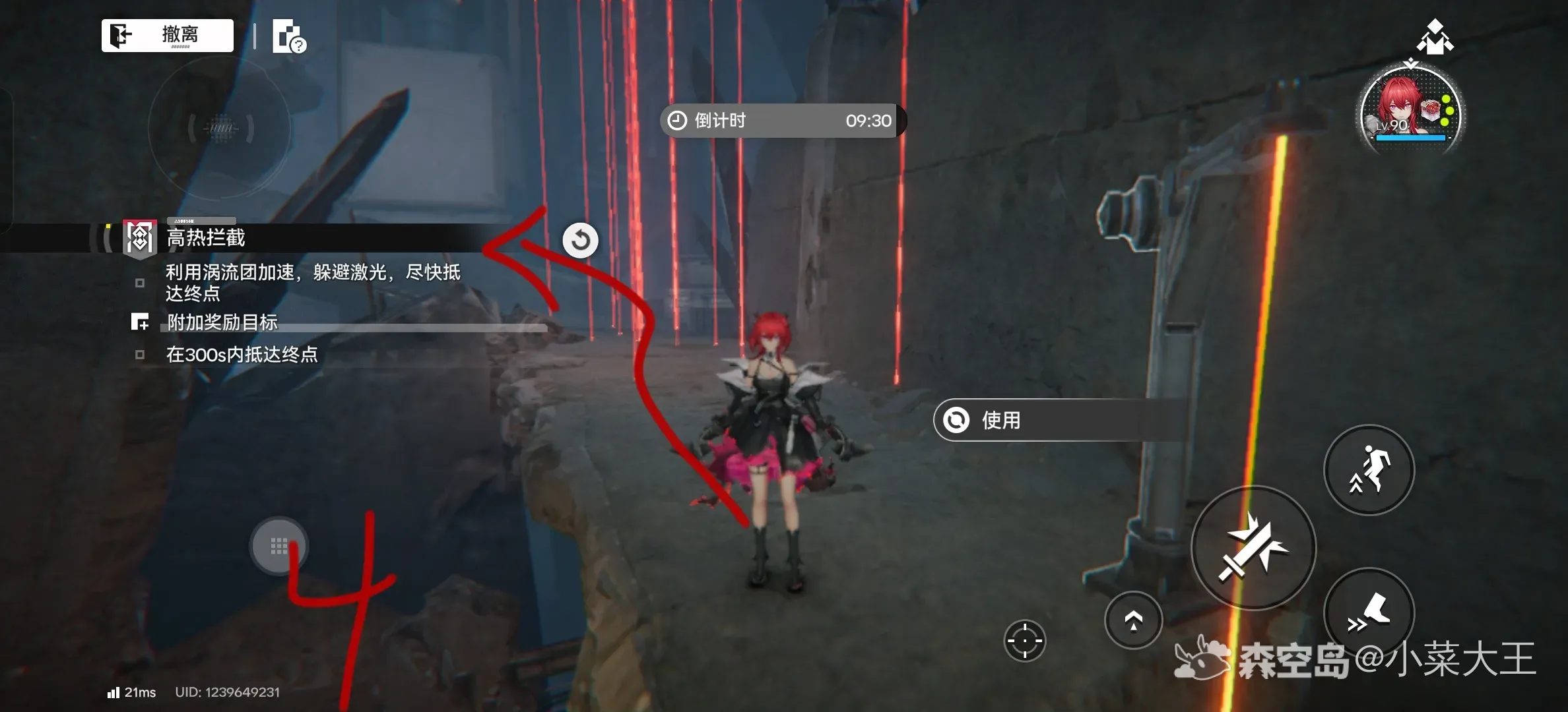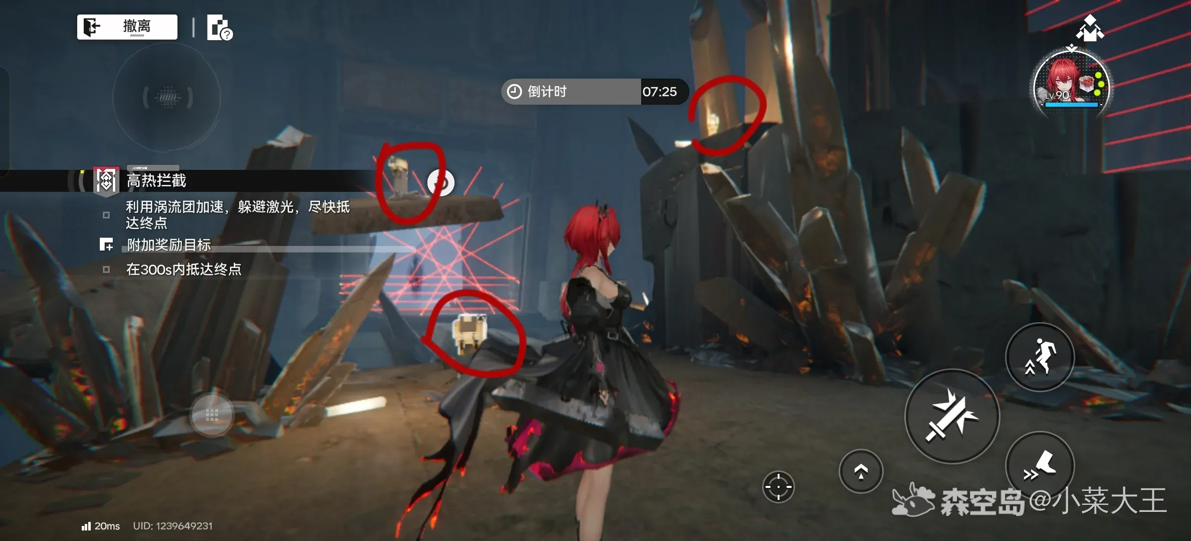 1.大洞下去后开启激光阵,向左走有台阶,把图中按钮全关掉以后就可以过去了(最后一个冲刺跳跃能过去)