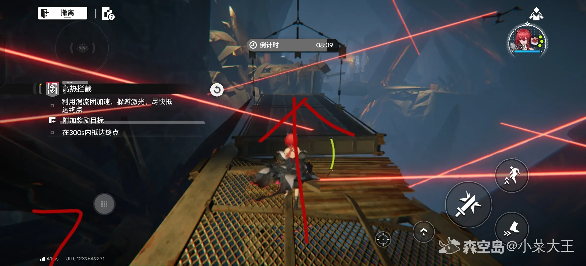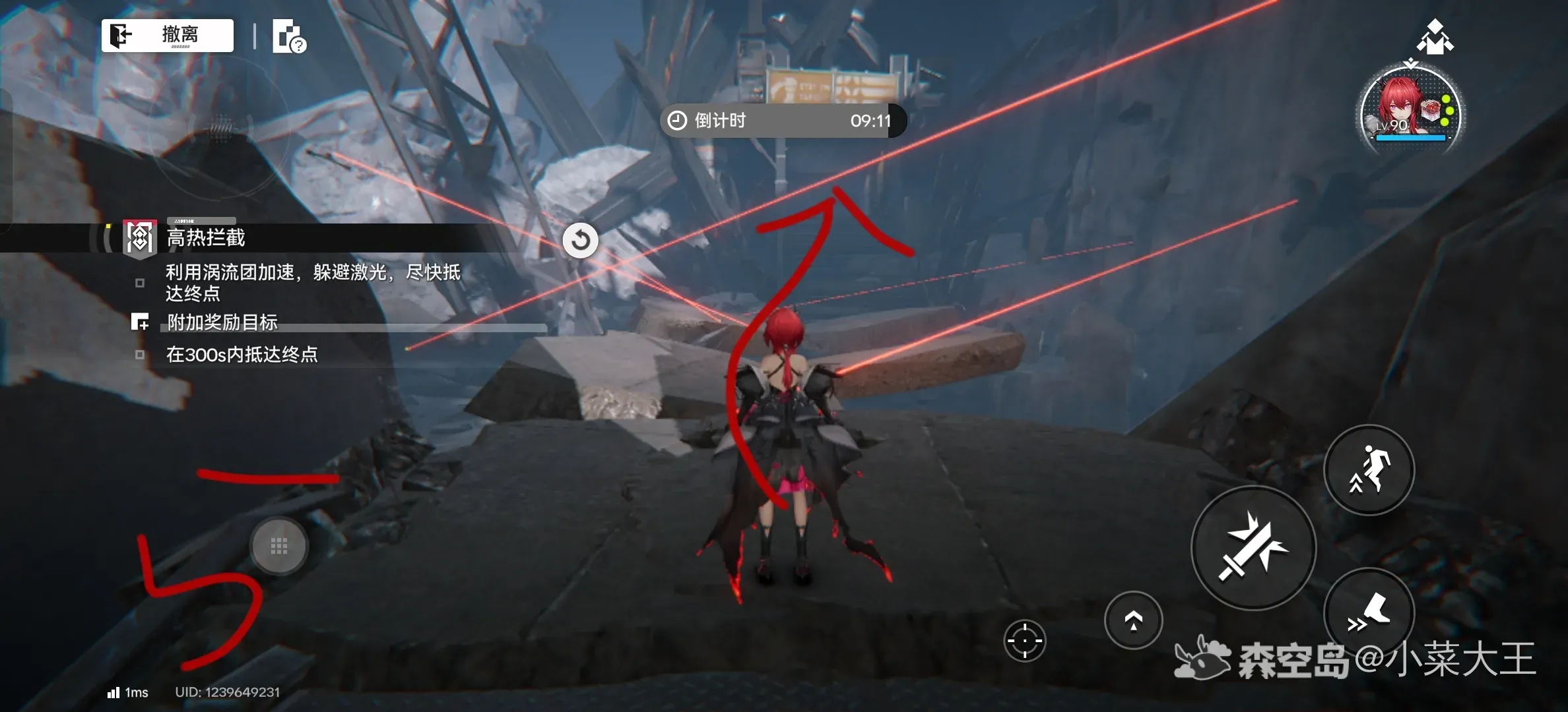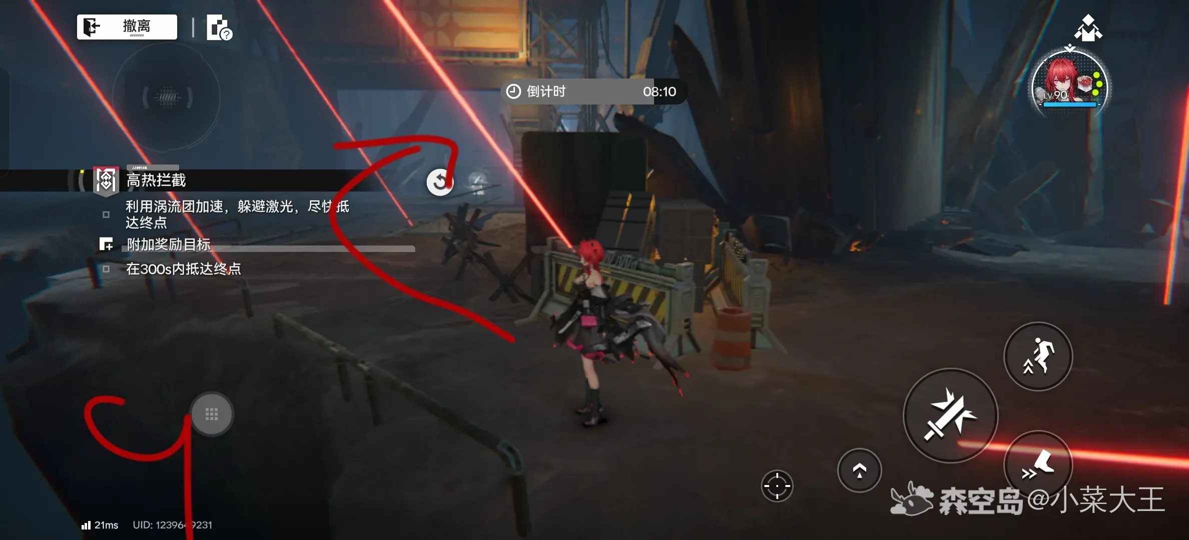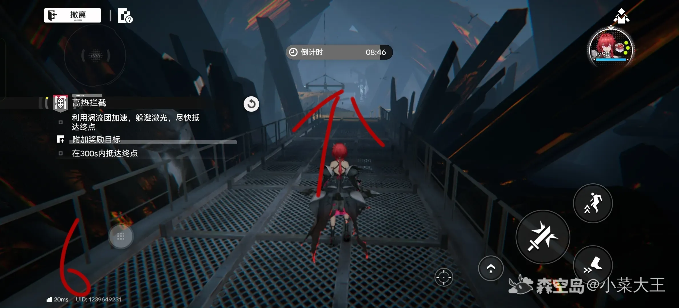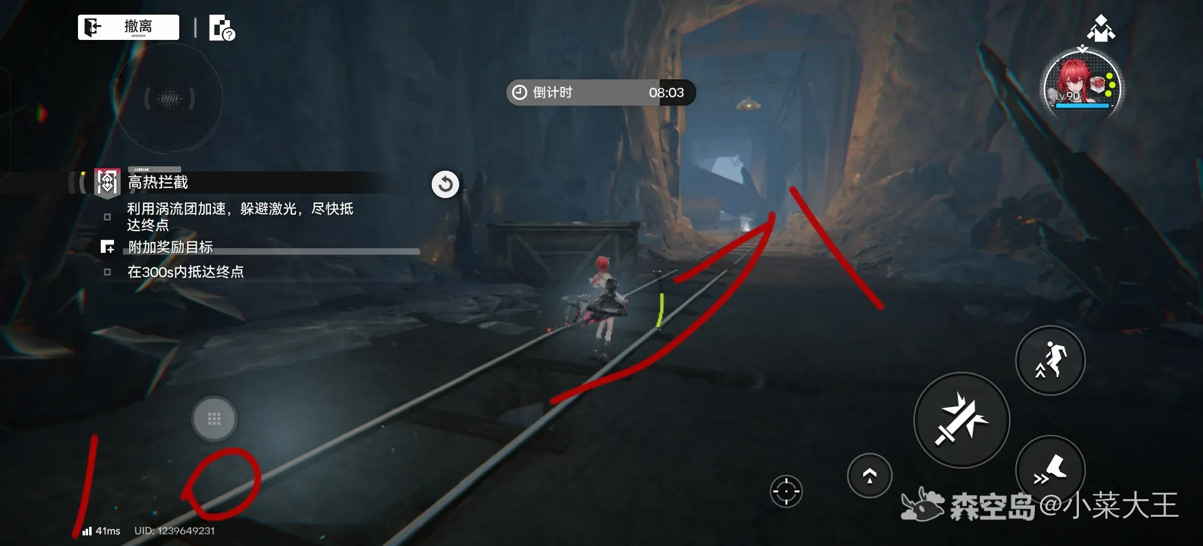 这关没有宝箱,跑快点就行力,路线如下