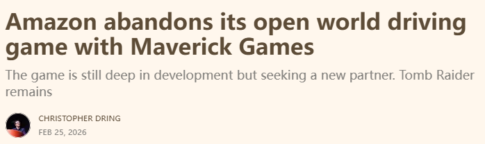 亚马逊退出原《极限竞速》开发者3A新游发行 游戏仍会继续开发