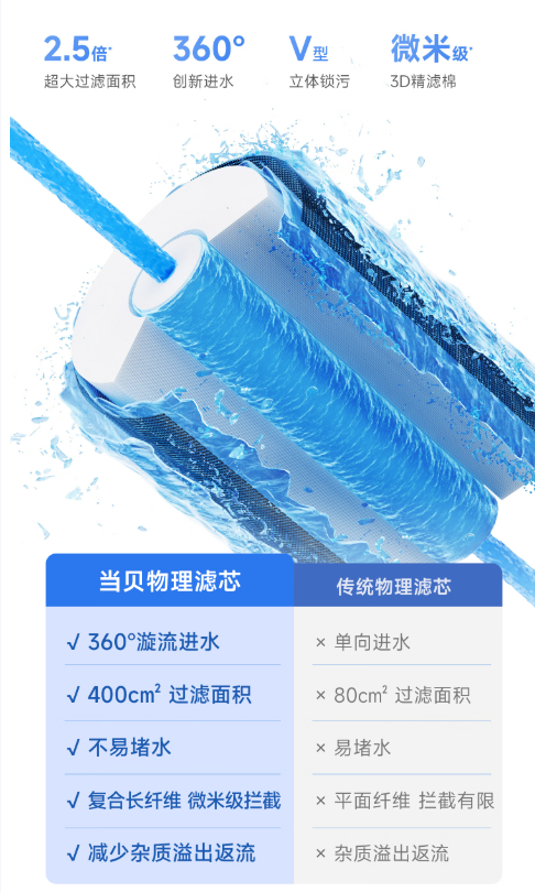 当贝借鉴了家用高端净水器的流道设计。其物理过滤与生化过滤被严格区分。