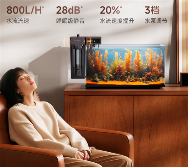 智能变频与3档调节:这让它能适应20cm到80cm的超大跨度鱼缸。它不是一个死板的抽水泵,而是一个可以根据鱼只密度动态调整功率的智能终端。