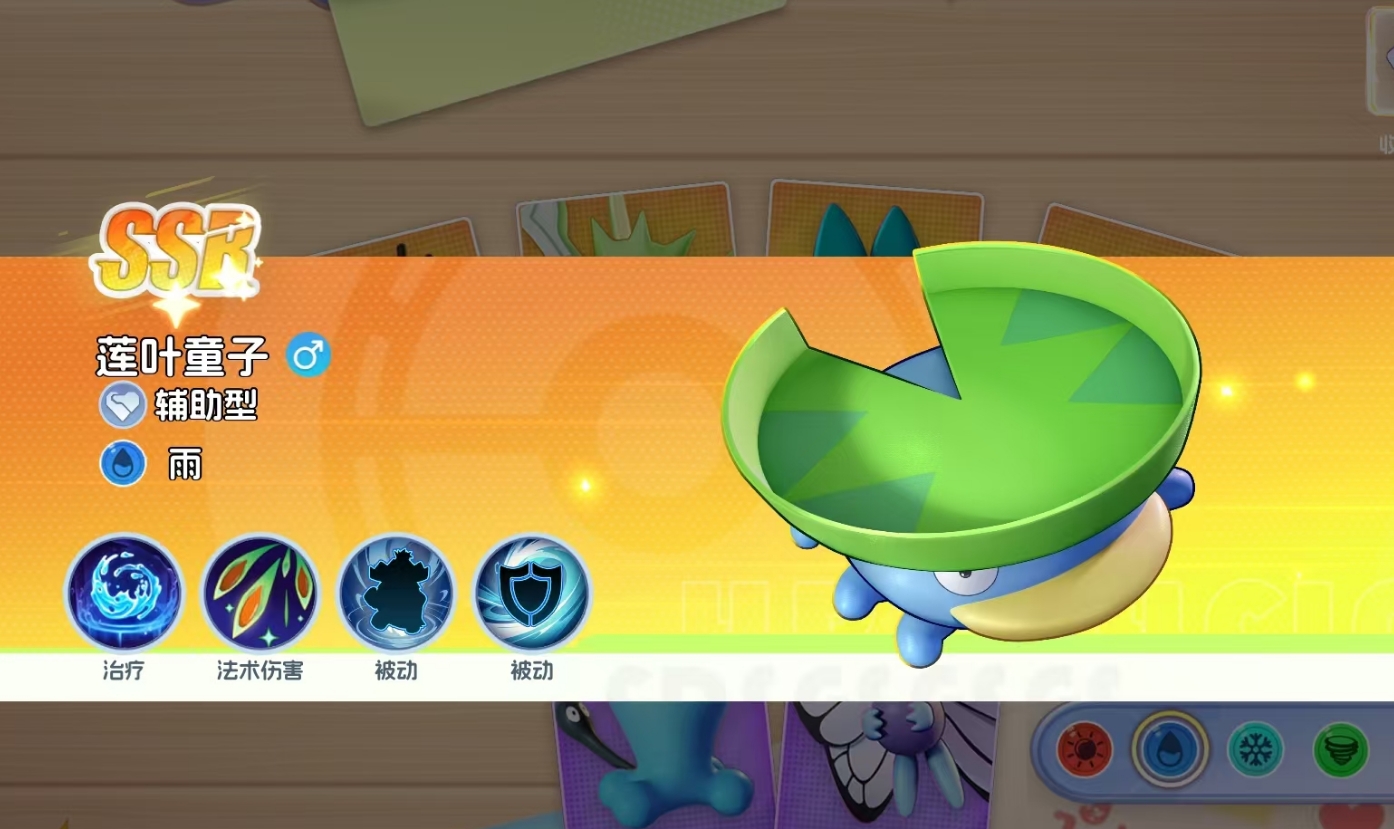 莲叶童子无严格固定配队限制,适配多种战术体系。在单核心输出阵容中,其作用尤为关键:一方面通过高频解控保障主力输出宝可梦的技能释放节奏,避免因麻痹、灼伤、冰冻等异常导致输出断档;另一方面依托持续治疗与生存增益,显著延长核心单位的战场存活时间。装备搭配方面,优先选择具备雨系属性加成的套装;武器无需强求专属词条,若资源充足,可选用“月亮之力奇迹发射器”进一步强化怒气回收效率,从而形成良性循环。