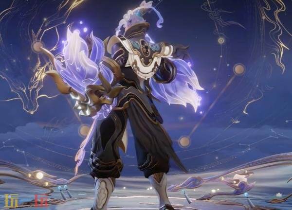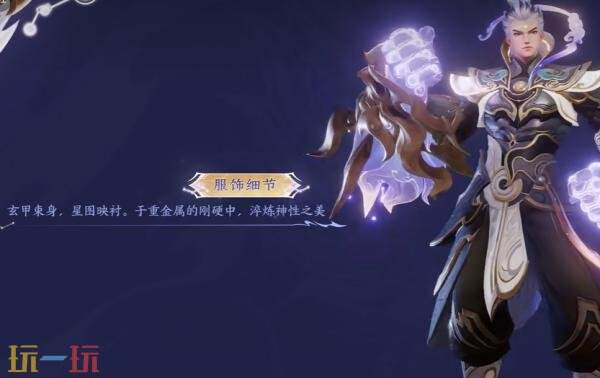 颜色设计:整体色调以紫金为主色调,星辰淡紫色结合深色铠甲,并以鎏金线条点缀其间,如同夜幕中流动的星河。
