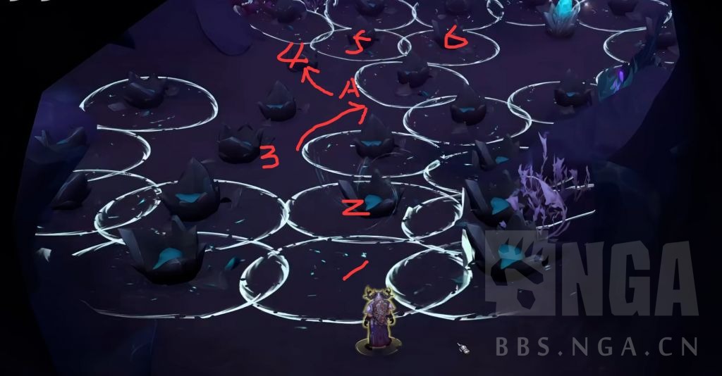 (2).等白圈消失后走三格到右侧等着(下图A点),等下一轮白圈出现消失后再走三格到蛋附近,点击蛋获取坐骑