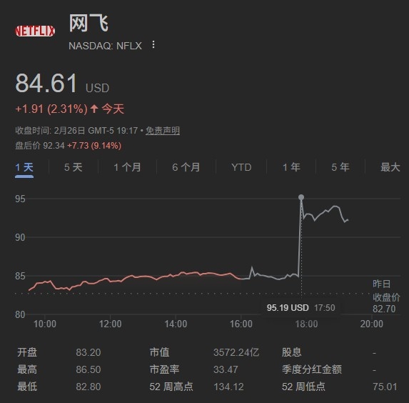 投资者听闻普遍松了一口气,网飞股价盘后跳涨10%。
