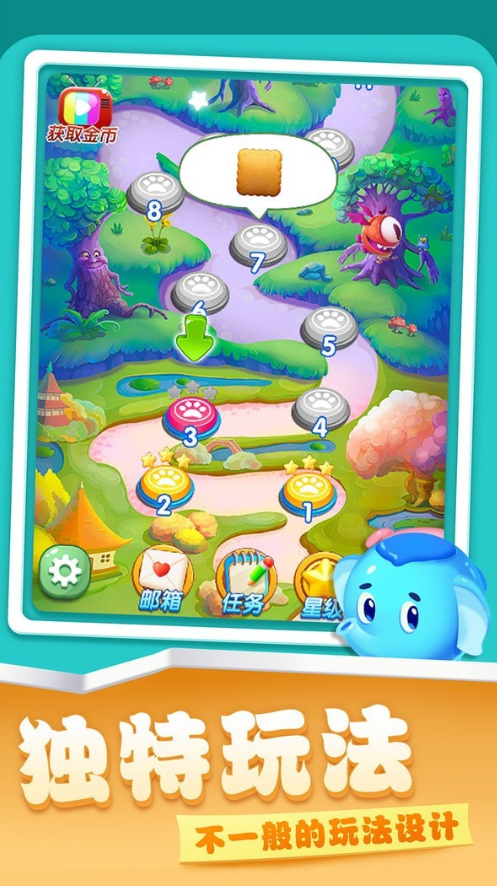 在传统三消框架基础上拓展了多元消除逻辑,支持多种组合方式与技能联动,道具系统丰富且具备策略搭配空间。关卡总量庞大,结构设计富于变化,色彩运用明丽协调,UI布局清晰合理。触控响应灵敏,音画同步自然,有助于缓解压力、提升专注力。每关均设差异化目标与限制条件,在轻松氛围中融入适度挑战性。