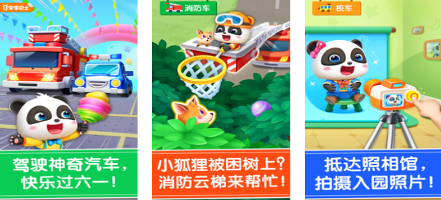围绕幼儿普遍喜爱的交通工具主题展开,构建消防车、救护车、工程车、校车等十余种功能车型的认知体系。游戏无剧情强引导,强调场景还原与功能体验,例如模拟救护车运送病人、挖掘机平整土地等。穿插拖拽匹配、声音辨识、顺序排序等轻量互动,兼顾趣味性与基础认知能力训练。