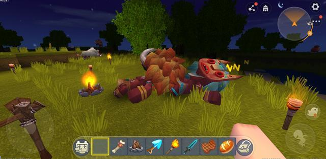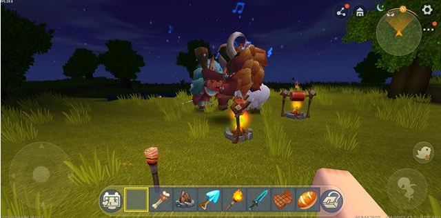 因为野人是在晚上的时候才会出现,所以我们先要等到晚上,然后将篝火放在地上,用火炬将篝火点燃,点燃篝火后在上面放上生肉进行烧烤。