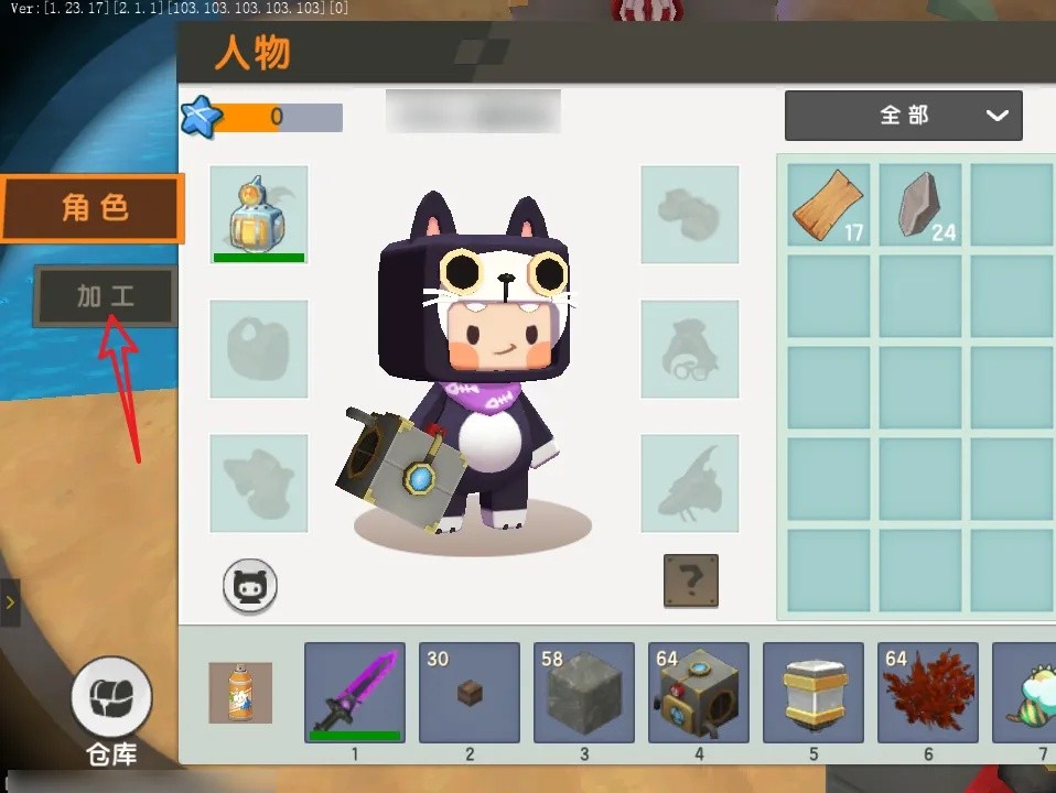 在背包界面点击加工。