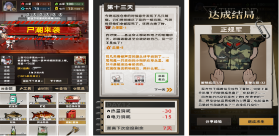 先进的物理引擎技术,也给大家带来沉浸式的末日生存体验,在变幻莫测的战场局势中,以独创的短时间为作战单位,增加了游戏的紧迫感和压迫感。当战争全方位打响时,大家需要在短暂的时间之内快速寻找到各种物资,或者收集到各种武器装备挑战丧尸,最终在末日环境之中争夺胜利的徽章。