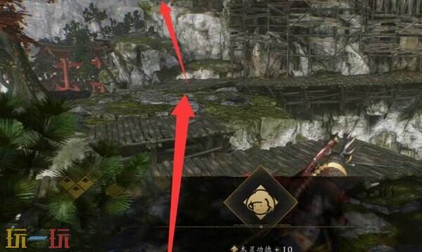 第三个灵脉后,跟随善擦到终点,旁边平台有木灵可收集。