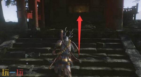 在神社内拾取迦具土的勾玉(任务道具),右侧有宝箱,注意环境较暗。