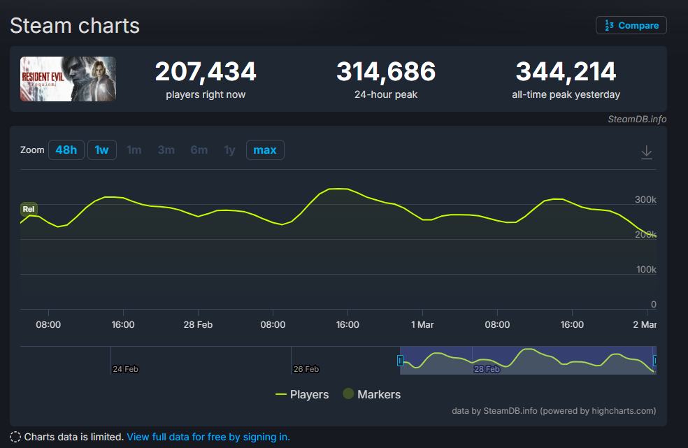《生化危机9:安魂曲》——34.4万同时在线玩家