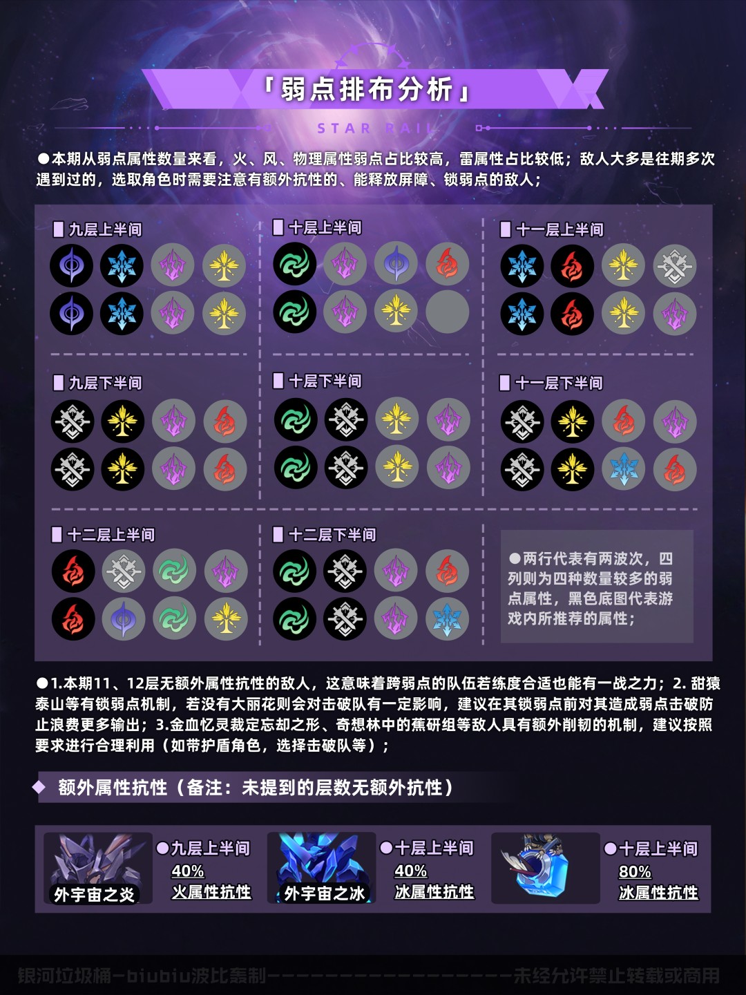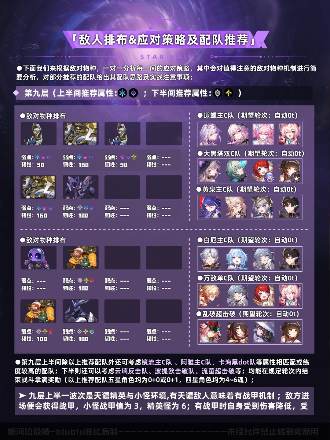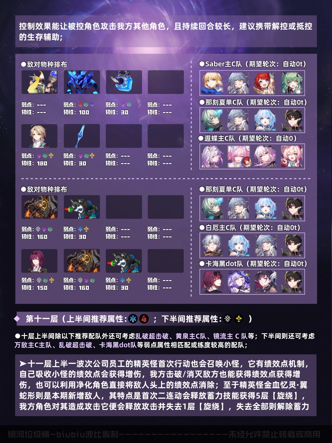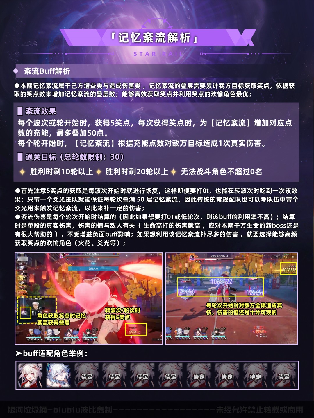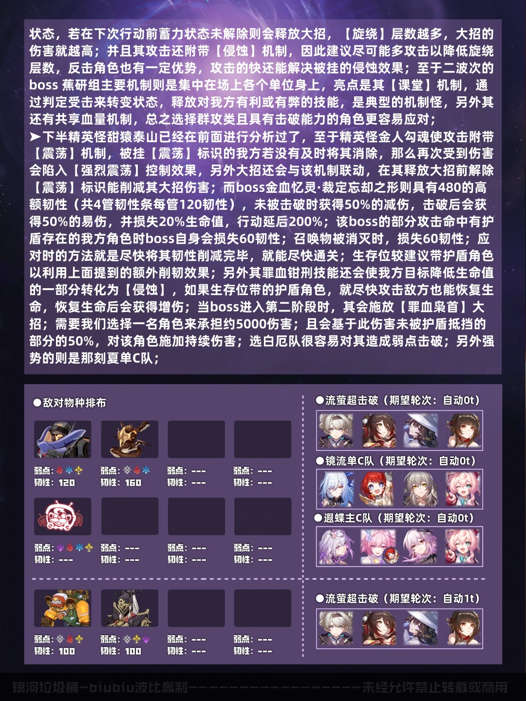 以上是本期的配队推荐速览(五星0+0/1,四星4~6魂,中低练度<遗器主词条正确,副词条>),想尽快了解可进行参考;下面就让我们对本期混沌回忆进行更详细的分析吧;