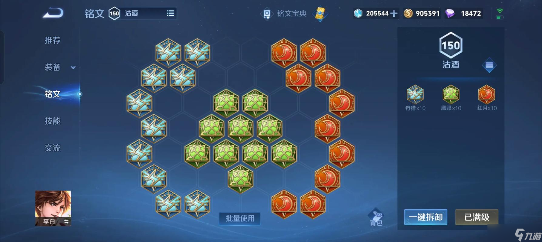 铭文搭配上推荐异变、鹰眼和狩猎的组合,百穿加上10%的攻速和移速总属性,能完美适配李白的出装体系。攻速加成让普攻连招更流畅,物理穿透则能提升前期对野怪和敌人的伤害。