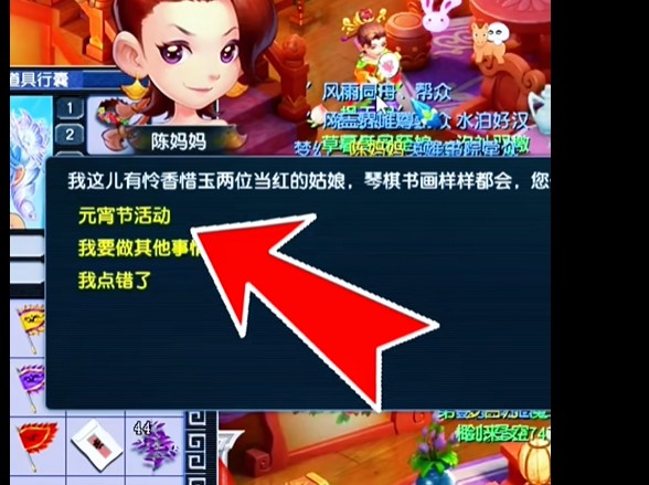 元宵节第五天(3月3日),灯谜:陈妈妈 坐标:留香阁(35,20)路线:长安城(215,35)进入留香阁