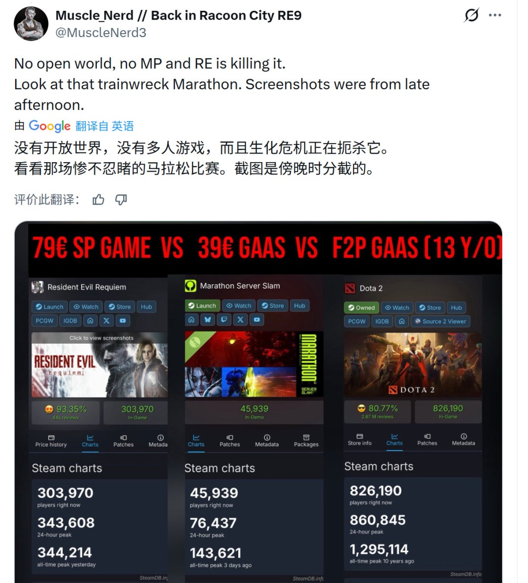 将近80欧元的付费游戏,碾压了免费B测的《马拉松》: