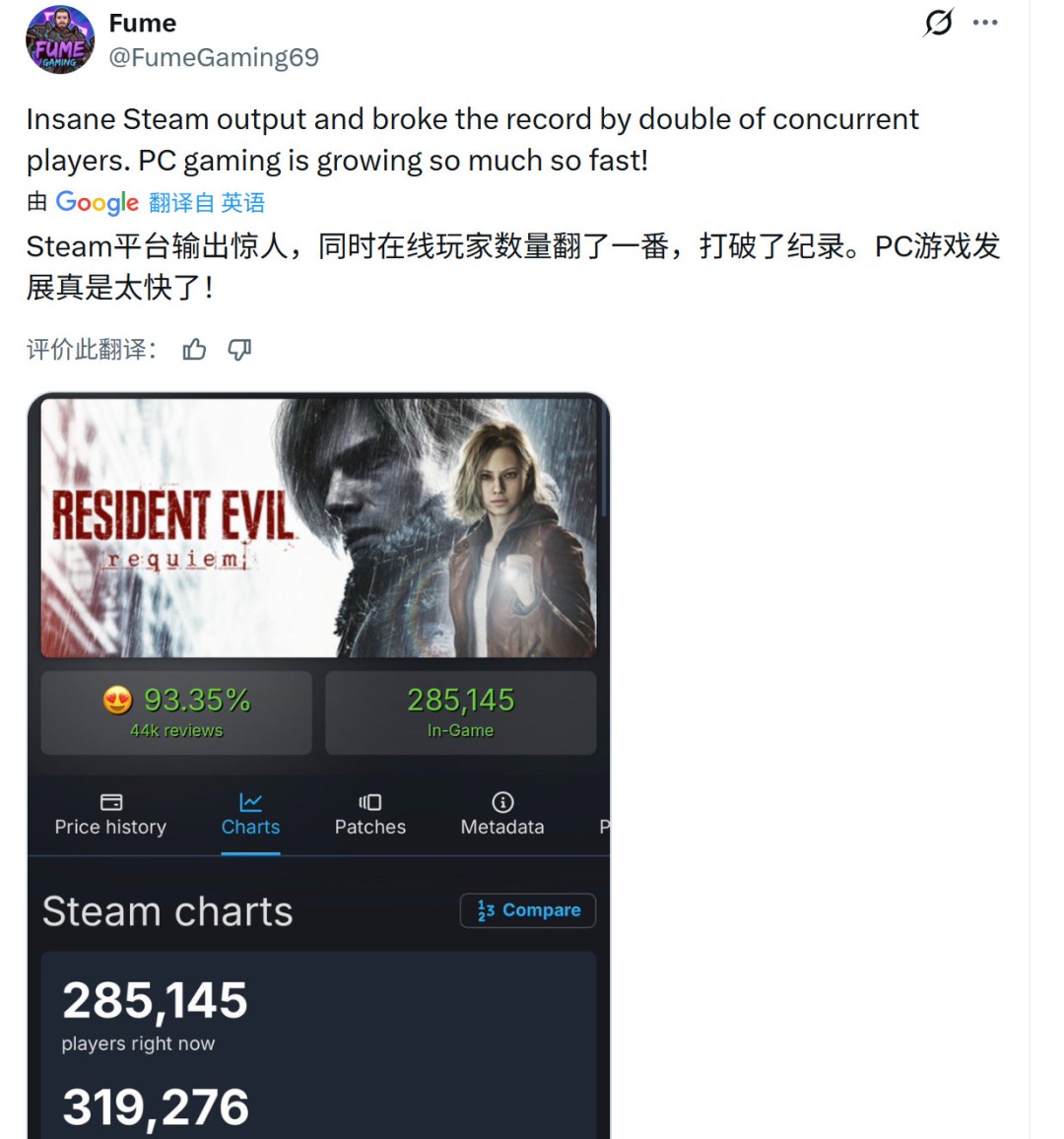 《生化危机9》现象还在继续,推主@SynthPotato称赞《生化危机2:重制版》到《生化危机9》的画质跃升简直太疯狂。这基本上代表着从PS4画质到PS5画质的一次飞跃,真正的代际跃迁。