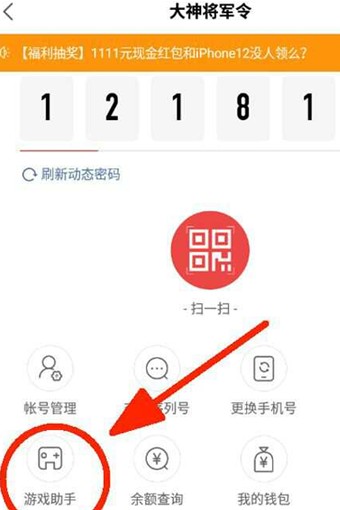 4、在“大神将军令”界面中,点击“游戏助手”