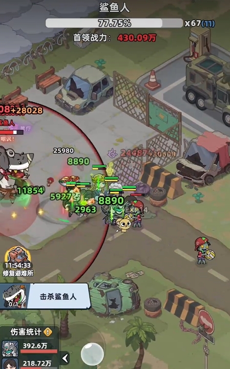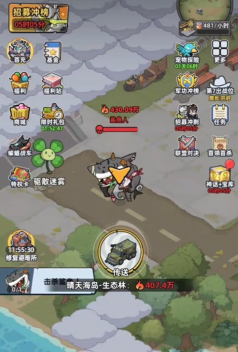 玩家们要想挑战鲨鱼人,需将地图探索推进至晴天海岛的生态林区域,鲨鱼人会在该区域的道路尽头进行镇守,也只有将它打败后,玩家才能使用木材去解锁下一片区域,否则无法继续探索。配队方面,由于鲨鱼人伤害很高,所以玩家正式挑战之前,可先将队伍带过去试试鲨鱼人的成色,若是在幸存者队伍携带单治疗角色的情况下能扛住鲨鱼人的普攻,则只需带单治疗既可,反之上双治疗保证队伍生存。如果双治疗也没办法帮玩家扛住鲨鱼人的普攻,最好等练度提高后再来挑战,除此之外上任何幸存者角色都可以,没有额外要求。