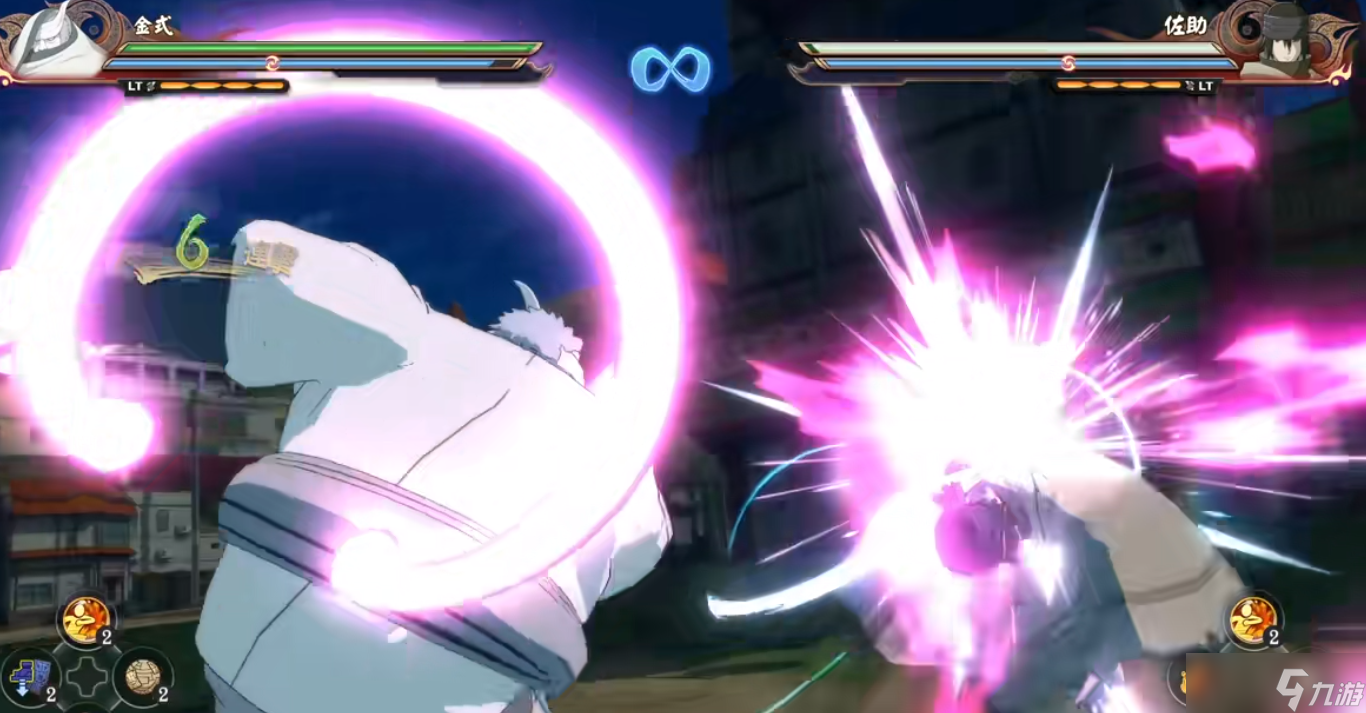 金式的第一段攻击会向前推掌,2A侧手翻以后再接一拳,3A瞬身到敌方身后连踢两脚,4A再次瞬身到敌方身后再接一脚,最后的两段攻击在命中敌人时都会使敌方跪地。这四段攻击就是金式的所有前置平A了,没有命中敌人的时,中下段的攻击只能打到第4A,而上段攻击可以直接打满。中段攻击第5A放查克拉黑棒将敌方击退,第6A进特写将敌方击飞。 需要注意的是,大体型角色只会给一个硬值。下段攻击第5A空中踢一脚,第6A进入特写将敌人击打。 面对大体型角色,同样是给一个硬值效果的。