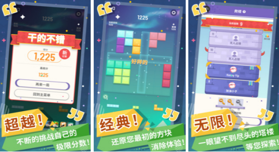 以经典消除机制为底层逻辑,融合方块堆叠、连击判定与关卡目标等多元玩法。游戏复刻俄罗斯方块核心操作逻辑,支持手指滑动旋转、快速下落与精准摆放,配合高清粒子特效与动态音效反馈,打造兼具策略性与解压感的休闲体验,适合全年龄段玩家日常放松使用。