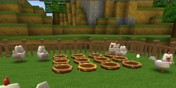 1、游戏中的鸡蛋需要通过鸡生下来,当鸡的附近有鸡窝时,鸡就会将蛋生到鸡窝中;