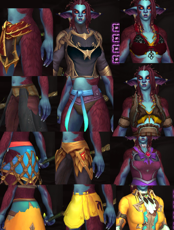 该问题波及范围极广:不仅涉及过往资料片中的旧有装备,甚至包括当前版本的模型以及商城中热卖的作战裙等幻化物品均存在穿模现象。玩家普遍认为,问题的根源在于开发团队直接复制了暗夜精灵的装备适配动画及坐标,而未针对哈拉尼尔独特的身体几何结构进行相应调整。