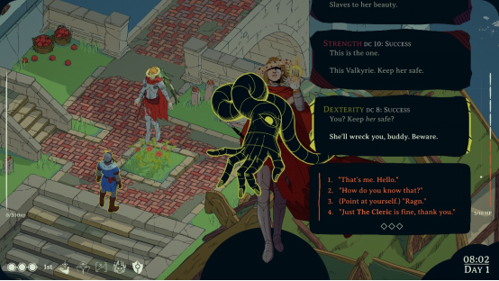 无论是和矮人摔跤、顺走眼前的一切,还是努力不让自己看起来像个彻头彻尾的傻子——都要掷骰决定。但别忘了,在真正的桌面 RPG 风格中,失败往往会带来更有趣的结果。