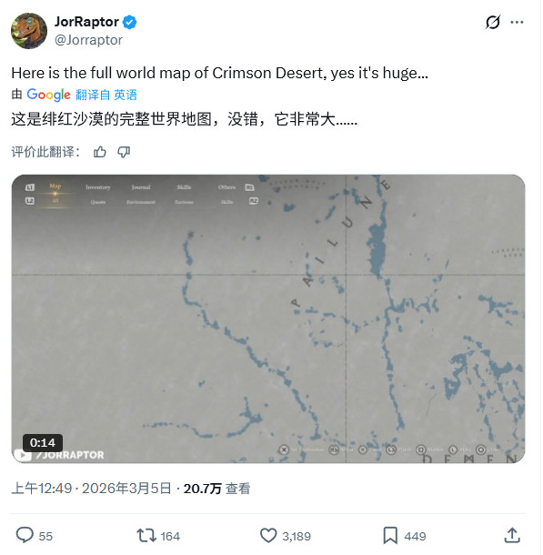 开放世界内容“非常充实”,IGN称地图规模之大令人震撼