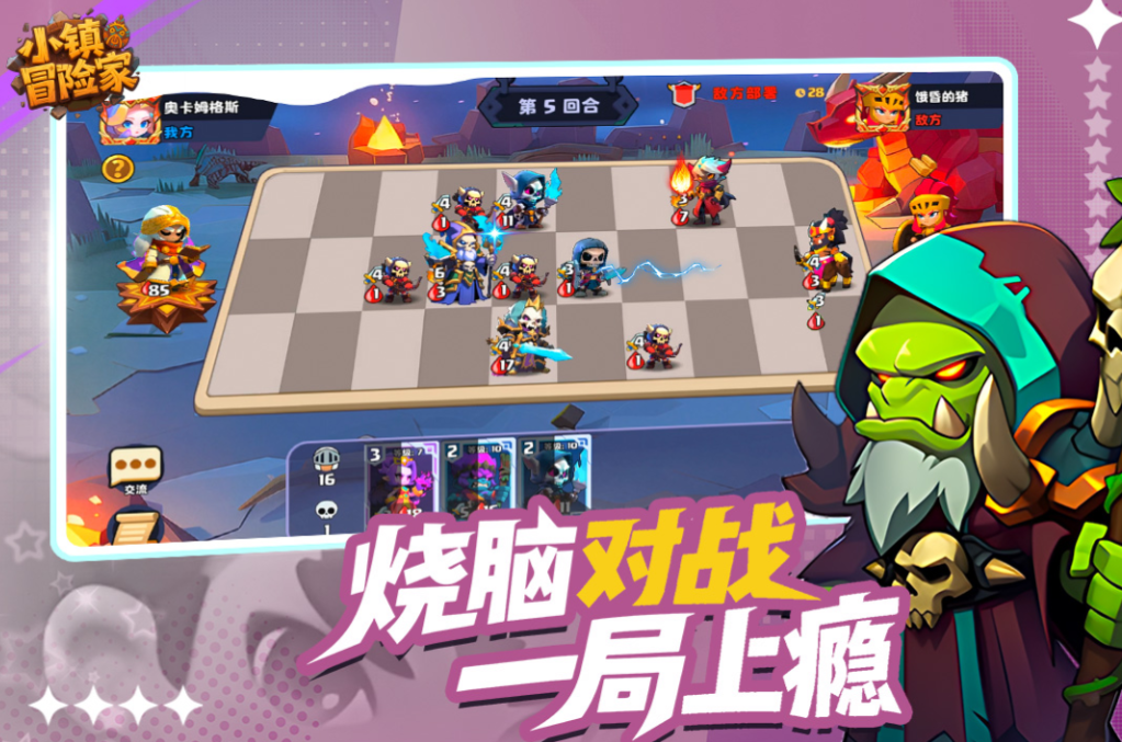游戏里,你会来到一个小镇,可以邂逅不少友好的npc角色,你可以将他们收服做打手。游戏有PVE玩法,赶紧邀请友人加盟,一块将力大无穷的BOSS剿灭,你们的情谊会随之滋长。游戏有排位赛,赶快紧锣密鼓地与实力等同的真人玩家,分别搭配一支角色阵容交战,看谁的运筹之能更加了得。另外评价一句,游戏月卡很划算哦!
