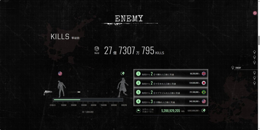 目前,距离击杀总数达到全球实际人口(约80.62亿)还差约52.9亿。