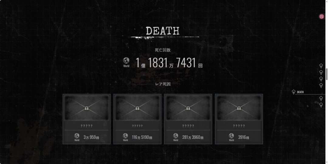 与此同时,全球玩家累计死亡次数达1亿1831万7431次,平均每击杀约23.4只怪物即有一次死亡,高难度下的生存压力可见一斑。