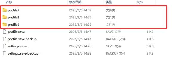 三个profile1/2/3文件夹对应三个存档位置。
