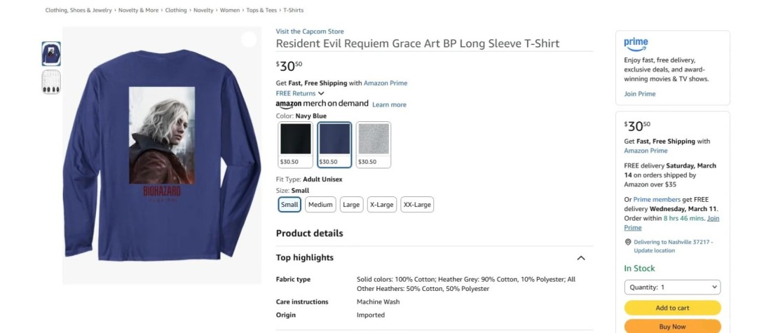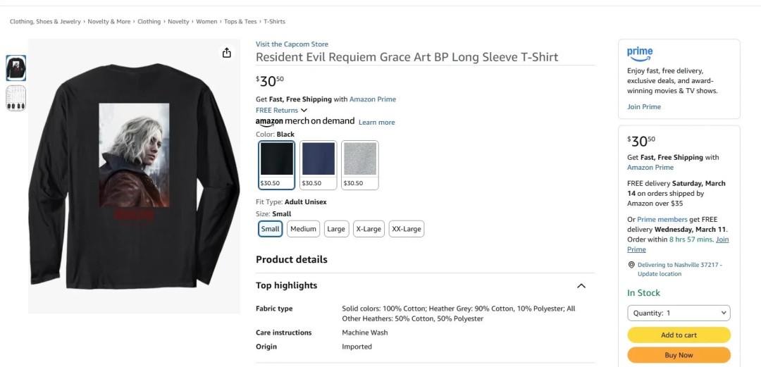 据商店显示,《生化危机9》短袖售价26美元(约合人民币179元)起,长袖售价30美元(约合人民币206元)起。