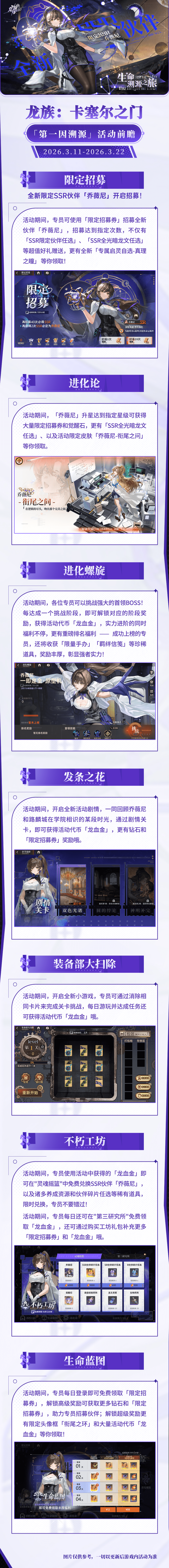 亲爱的专员,全新版本活动「生命溯源之旅」即将于3月11日正式开启!