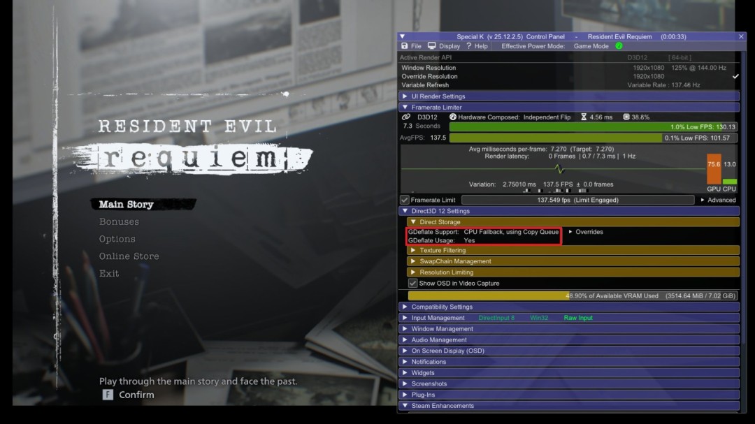 《生化危机9》GPU解压技术启用随机 性能差异微乎其微!