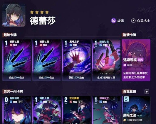 所以在实战的过程中,一定要先把这一张核心卡牌拉满,伤害提升也会很明显一些,保证匕首够用,才能一直稳定打出伤害。特蕾莎有一个非常关键的技能,用起来不耗费用,能够多拿暗影匕首,还能强化普通攻击,打起来更顺手一些。在装备方面比较推荐虚无的启示录,做完游戏中的相关任务之后就可以拿到了,带上这个装备之后,每一次用攻击牌都能获得20%的固定护盾,很适合他频繁攻击的玩法,能够大幅度提升生存能力。