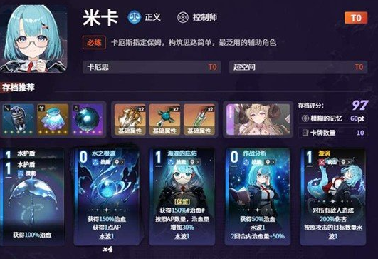 在阵容这方面,建议大家可以用德蕾莎和米卡以及艾美三个人配合,这三个角色的关键技能可以互相衔接,既能稳住队伍中的血量又能一直稳定打出伤害。特别是新手玩家比较适合用这个阵容,能够帮我们在前期快速发育起来,这一套阵容最主要的就是第1位人物,他手里的专属卡牌才是整个思路的基础。作用就是吃到技能回血的时候,多出一张暗影匕首,只用很少的费用就可以打出两次技能伤害,这一把匕首不只是他的主要伤害手段,还能让对方一直掉血。