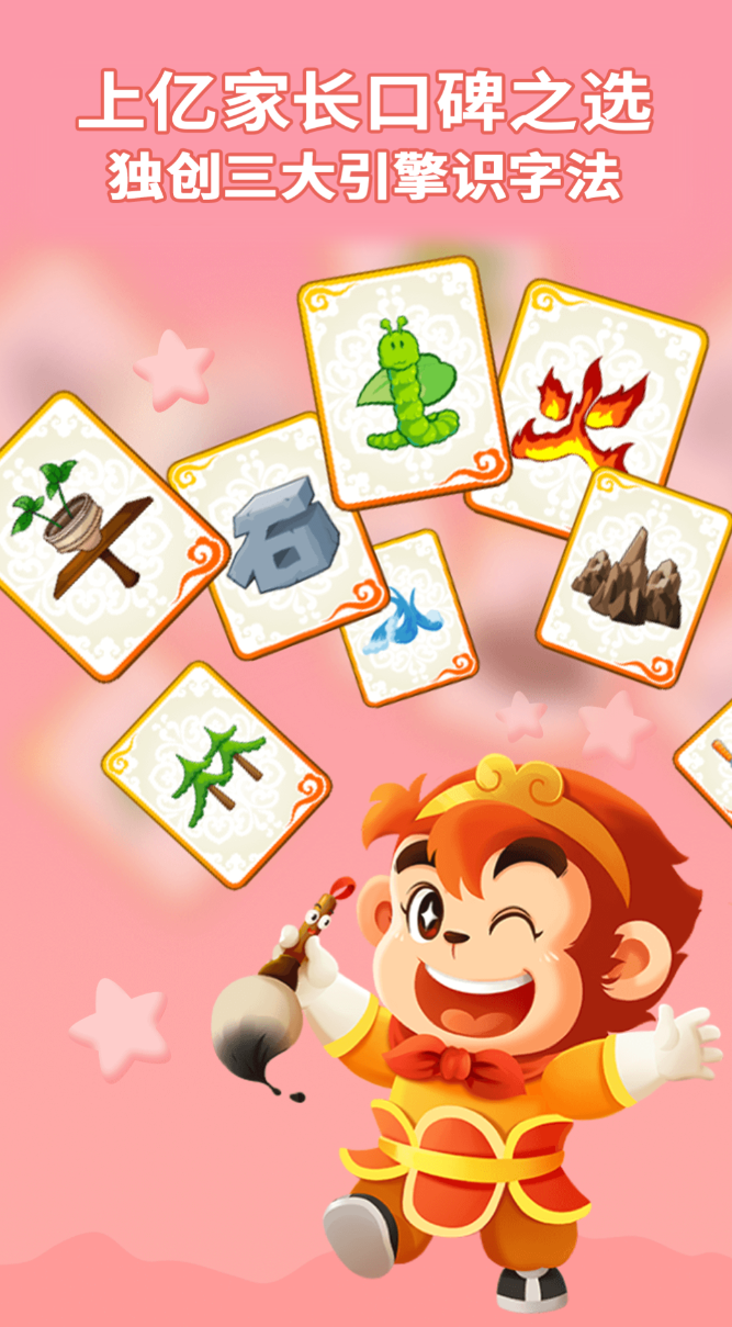 以西游记IP为叙事主线,设计15个递进式关卡、160余个沉浸式识字游戏,通过剧情驱动维持持续注意力。独创“象形识字引擎”,以动态演变动画直观呈现甲骨文→金文→小篆→楷书的字形演化过程,深化汉字起源理解。采用科学记忆模型,整合“认—练—读—写—复习”全流程,强化短期输入与长期巩固。覆盖1200至1500个常用汉字,匹配5500余条高频词句组合;配套75本西游主题绘本与60本阶梯式阅读材料,助力平稳过渡至自主阅读阶段。新字学习量可自由设定为3–10个/日,已掌握汉字支持手动跳过,提升学习效率。