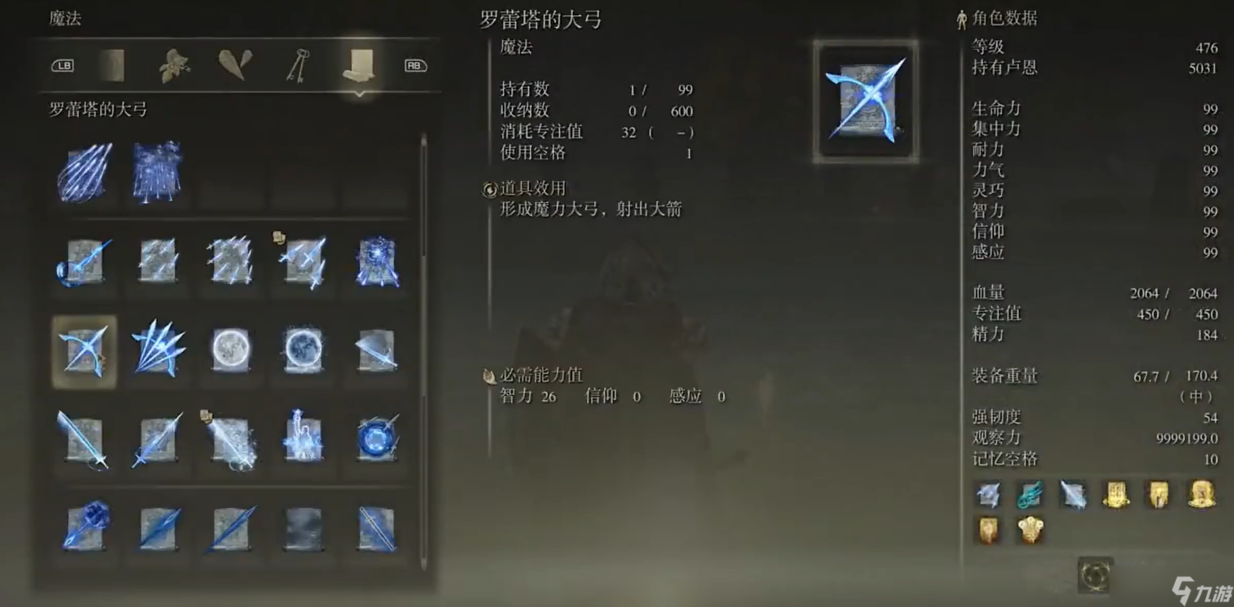 许多强力的法术需要通过挑战并击败特定的BOSS来获得。击败魔法学院雷亚卢卡利亚的满月女王蕾娜菈后,可以用她的追忆兑换传说级魔法蕾娜菈的满月。击败学院中的红狼BOSS可以获取罗蕾塔的大弓,这是一项超远射程的狙击利器。推进魔女菈妮的支线任务并最终在月光祭坛完成仪式,则可以获得具有减益效果的菈妮的暗月。