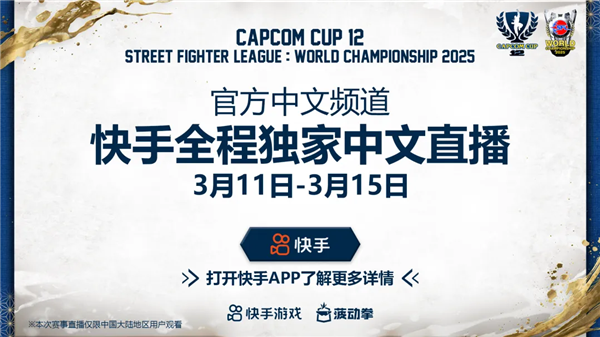3月11日至15日,第12届卡普空杯(CAPCOM CUP 12)与SFL全球总决赛(STREET FIGHTER LEAGUE: WORLD CHAMPIONSHIP 2025)将正式打响。作为中国大陆地区2025赛季战略合作伙伴,快手将全程提供独家中文直播,为国内玩家带来专业、流畅的沉浸式观赛体验。