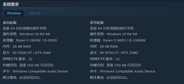 从官方配置来看,配置很亲民,而实际的游戏需求,在官方推荐配置的基础上肯定会高一些,但应该也不会高太多,RTX 5050级别的入门显卡,足以在1080P分辨率下畅玩,RTX 5060 Ti以上的显卡,2K最高画质畅玩问题不大,想体验4K分辨率的话,RTX 5070以上的显卡也足可畅玩。