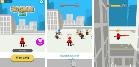 以现代都市为叙事舞台,采用极简火柴人形象降低视觉干扰,突出操作反馈。基础操作仅需单点触控即可触发跳跃或翻滚动作,适配碎片化游玩场景。支持实时多人同屏竞速,所有参与者同步起跑,依据抵达终点顺序结算排名。赛道中分布金币、加速带及临时护盾等交互要素,兼顾收集乐趣与策略决策。